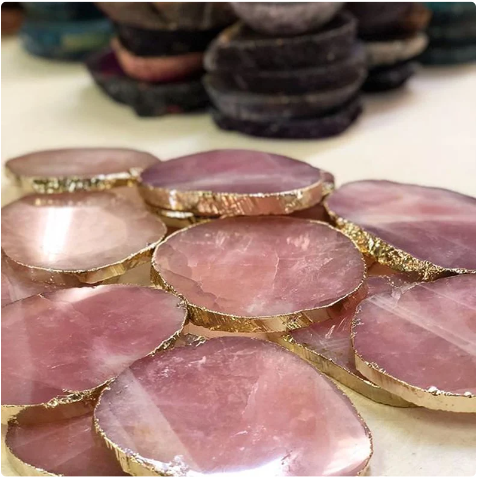 ที่ดีที่สุดคุณภาพร้อนขายธรรมชาติโรสควอตซ์ Coasters กับธรรมชาติตัดชุด4ซื้อจาก ALIF คริสตัลและโมรา