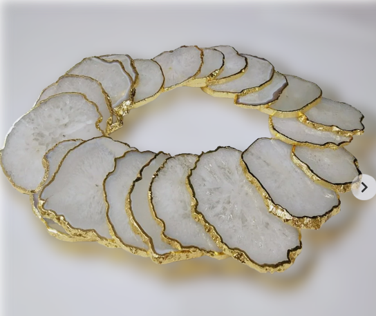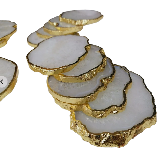ที่รองแก้วหินอาเกตธรรมชาติสีขาว,ชุดที่รองแก้วหินโมราเคลือบเงิน/ทองพร้อมขอบชุบ