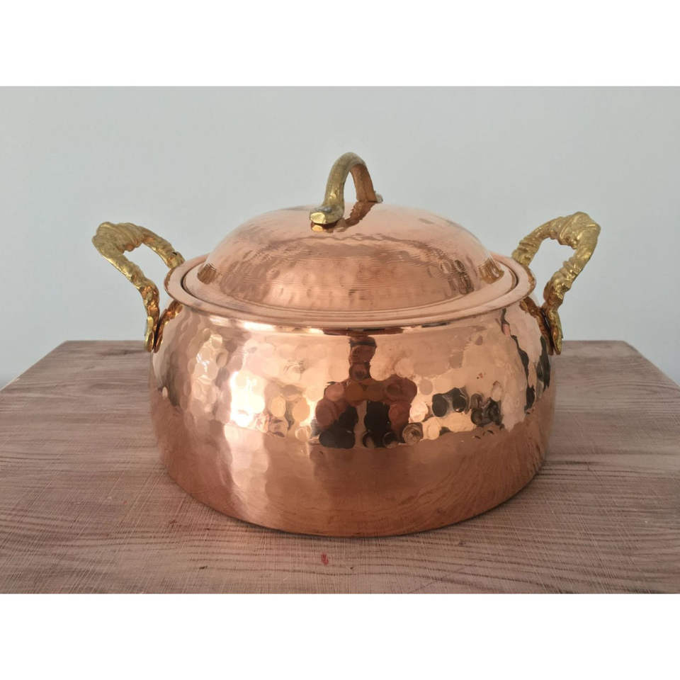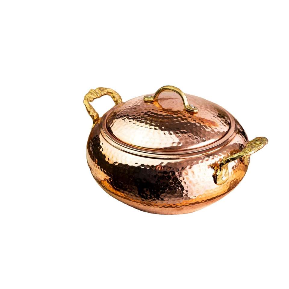 ถาดเสิร์ฟโลหะทองแดงบริสุทธิ์จากอินเดียพร้อมรูปทรงกลมส่งตรงจากอินเดีย