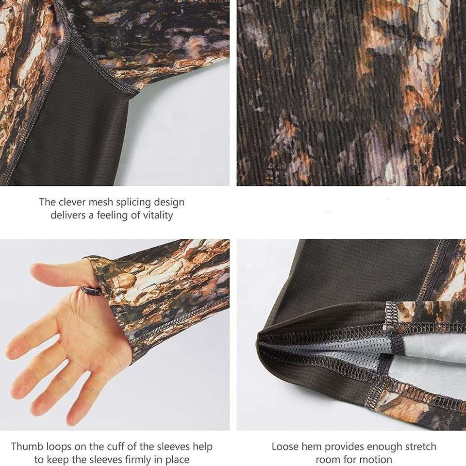 เสื้อยืดแขนยาวคุณภาพดีที่สุดสำหรับผู้ชาย ขายส่ง MOQ ต่ำ เสื้อยืดลายพรางสำหรับล่าสัตว์กลางแจ้งสำหรับผู้ชายแบบสั่งทำ