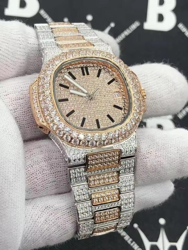 นาฬิกาหรูหราประดับเพชรโมอิสซาไนต์คุณภาพเยี่ยม พร้อมเพชรระยิบระยับสำหรับผู้ชาย มีจำหน่ายในราคาส่งออก