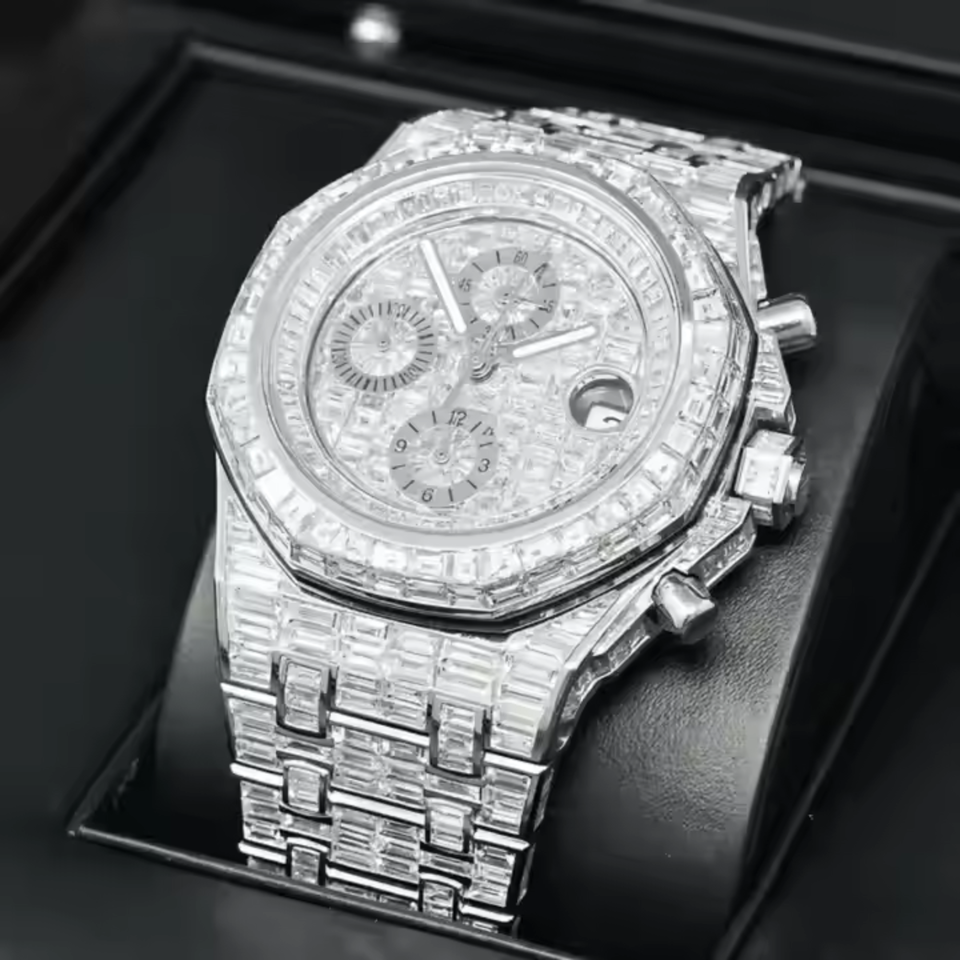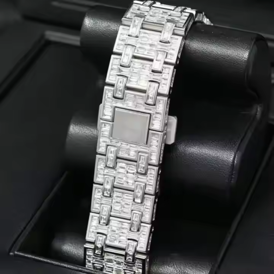 นาฬิกาเพชรสองสี VVS Moissanite สไตล์หนามที่เป็นเอกลักษณ์สำหรับงานปาร์ตี้ฮิปฮอปสุดหรูงานปาร์ตี้สแตนเลสโบราณ