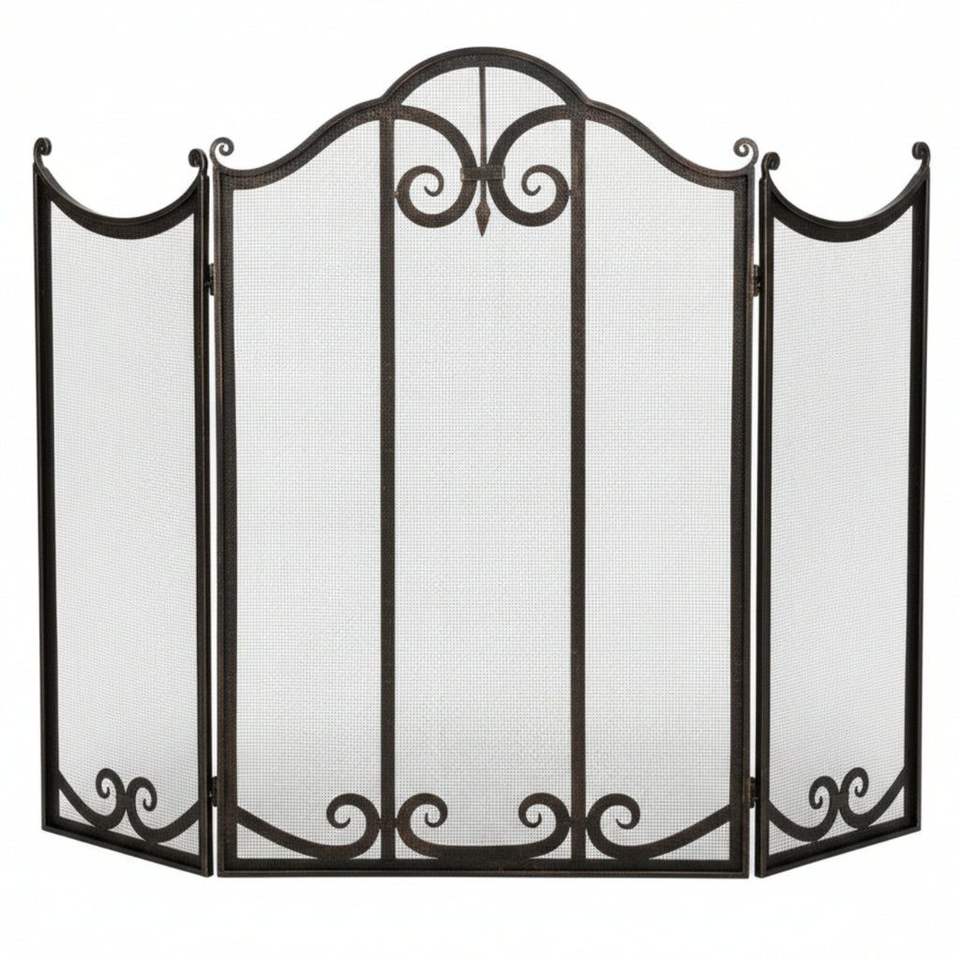 ฉากกั้นไฟคุณภาพดีที่สุด ทำจากลวดเหล็ก สำหรับเตาผิง สีดำ แบบแผงเดียว แข็งแรง