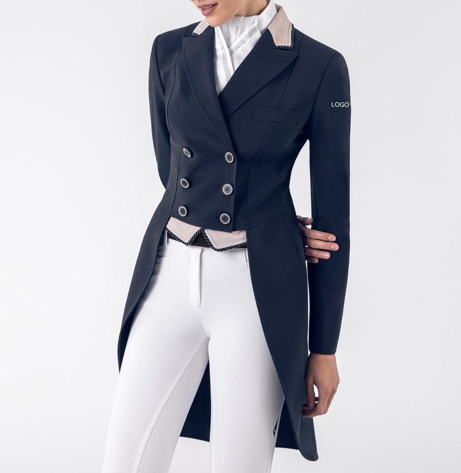 เสื้อแจ็กเก็ตขี่ม้าสำหรับผู้หญิงเสื้อคลุมไนลอนสแปนเด็กซ์สำหรับการแข่งขันขี่ม้าแบบคลาสสิก