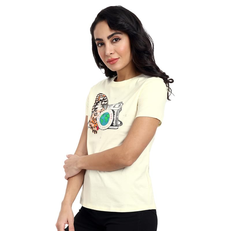 เสื้อยืดแขนสั้นคอกลมสีเหลืองมะนาวสำหรับผู้หญิงพิมพ์ลายกราฟิกไซส์ใหญ่พิเศษผ้าฝ้ายโลโก้สีทึบสำหรับฤดูร้อน