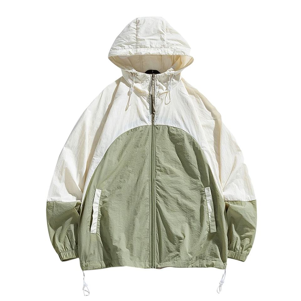 แจ็กเก็ตกลางแจ้งกันลมสำหรับผู้ชายผ้าแคนวาสคอตั้งโลโก้ด้านหน้ามีฮู้ดเนื้อผ้าฝ้ายระบายอากาศได้ดีน้ำหนักเบา