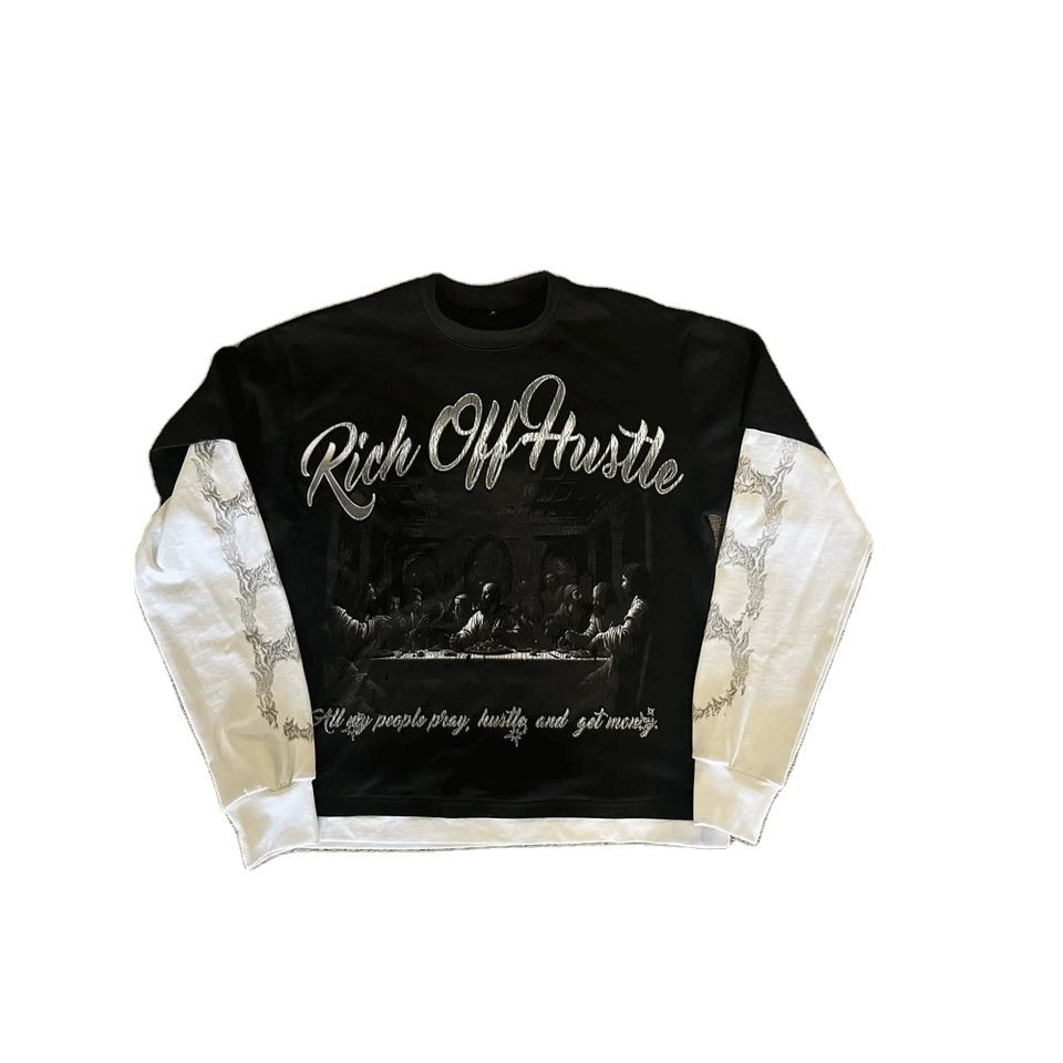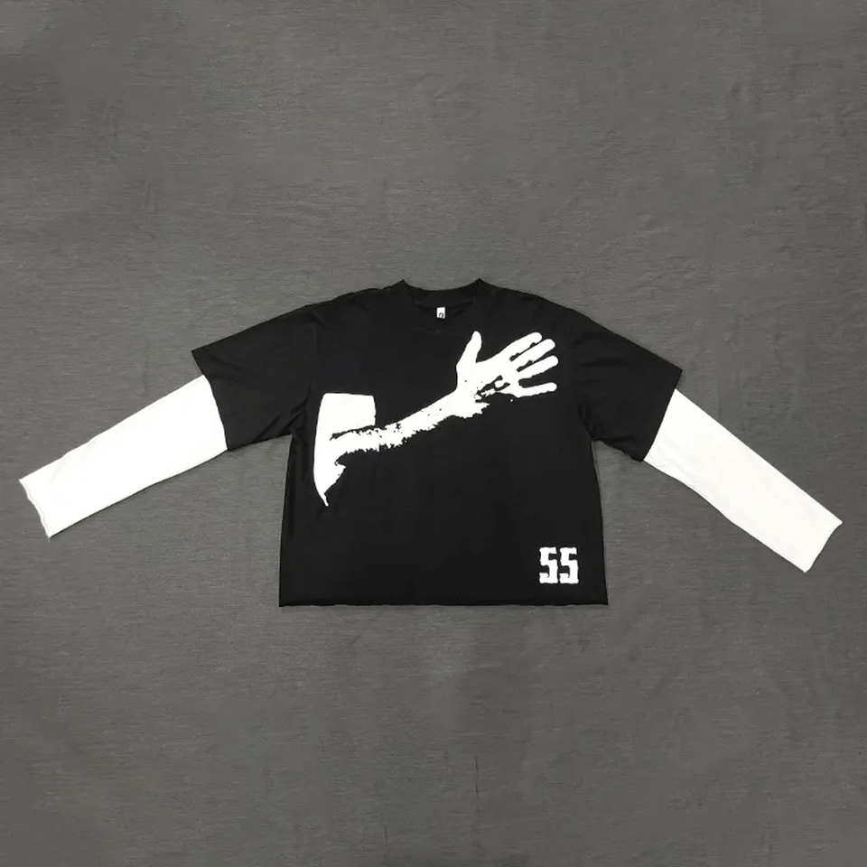 เสื้อยืดแขนยาวโอเวอร์ไซส์สำหรับผู้ชายเสื้อยืดผ้าฝ้าย100% เย็บปะสองชั้นสำหรับผู้ชายโลโก้ตามสั่ง