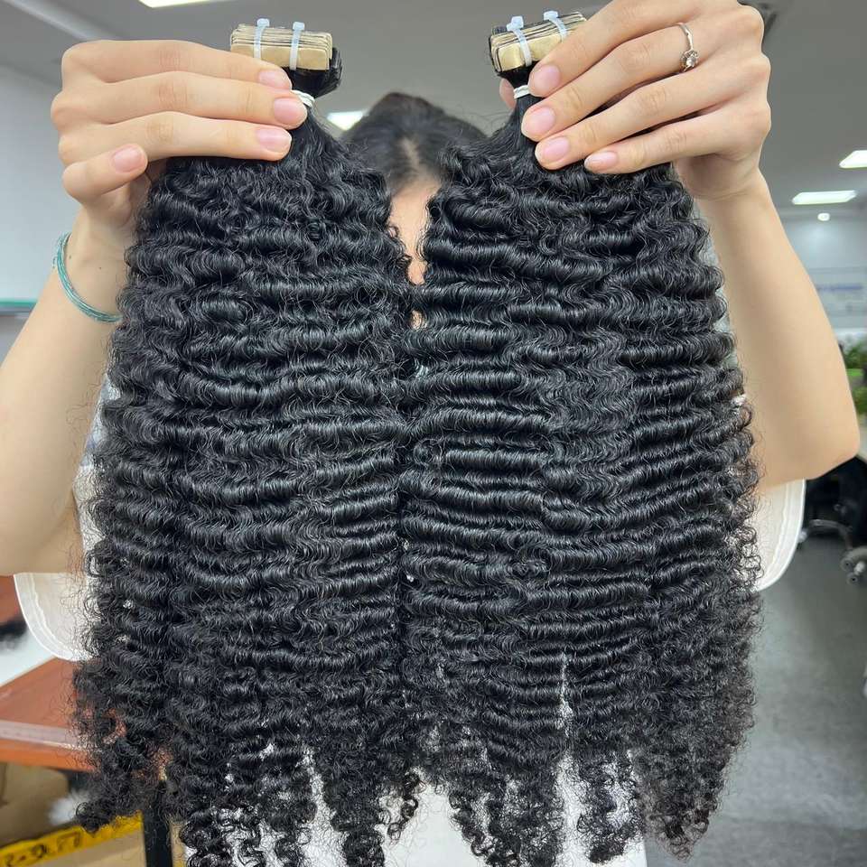 ผมต่อแบบเทปม้วนแบบม้วนสุดหรูผมต่อแบบขดเป็นลอน100% ผมมนุษย์กัมพูชาเครื่องดึงเส้นใยคู่