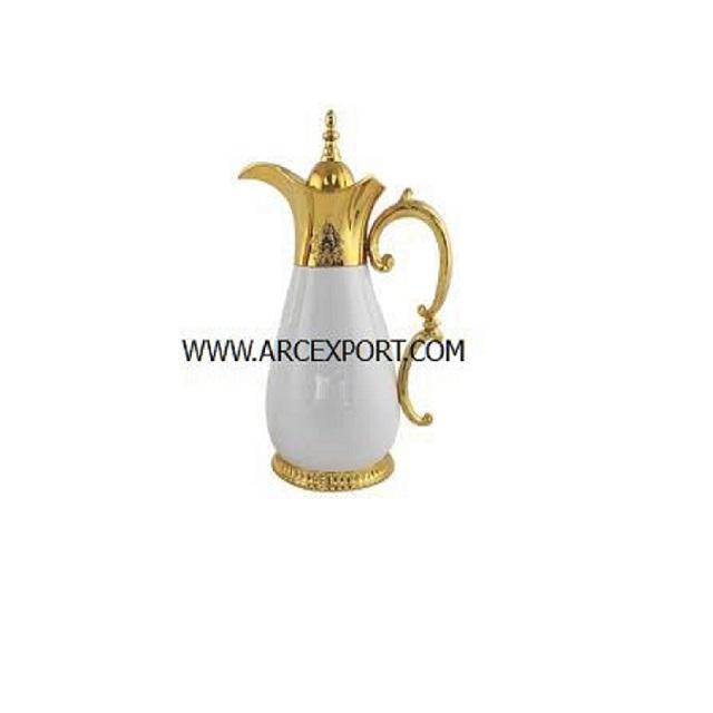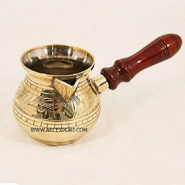 กาน้ำชาขัดเงาสีทองดีไซน์เนอร์ที่มีด้ามจับไม้สีน้ำตาลมีลวดลายสวยงามหรูหรามีสไตล์