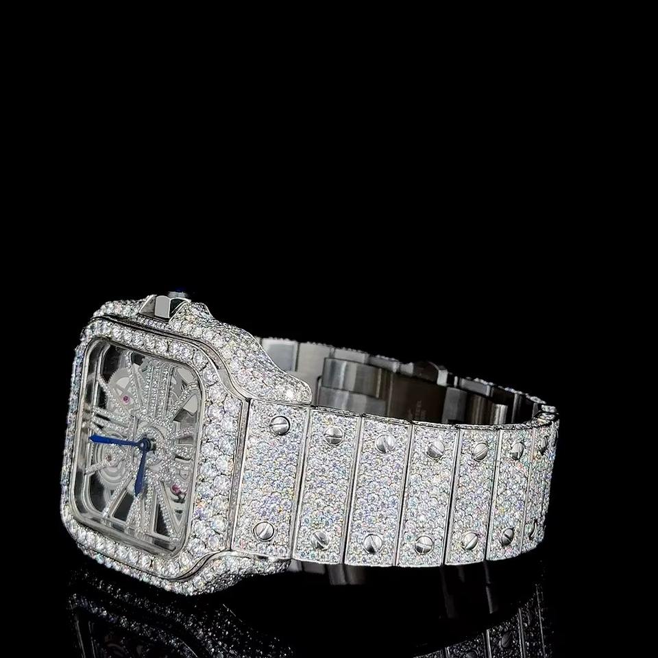 Best Quality Luxury White Gold Diamond Watch for Men with Full Iced Out Design with Stainless Steel Strap Available for Sale