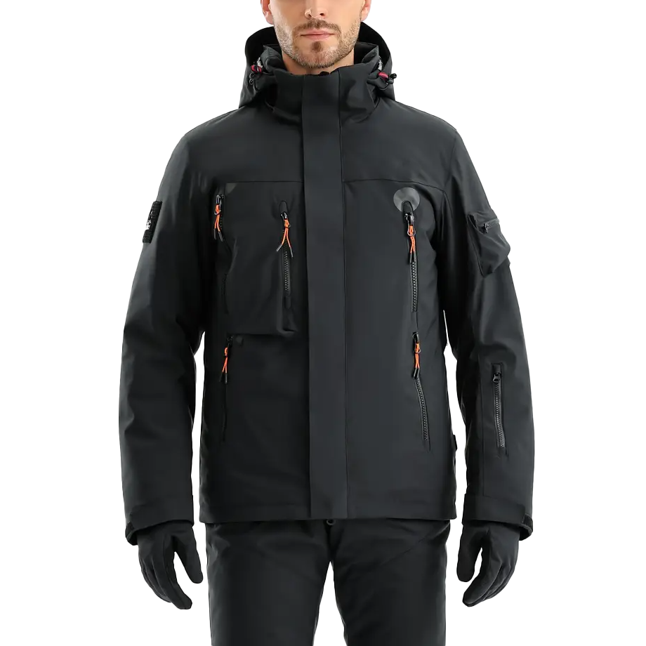 แจ็กเก็ตสกีกันน้ำสำหรับผู้ชายเสื้อแจ็คเก็ตมีฮู้ดสำหรับเล่นสกีกันน้ำมีกระเป๋าข้างและซิปด้านหน้า