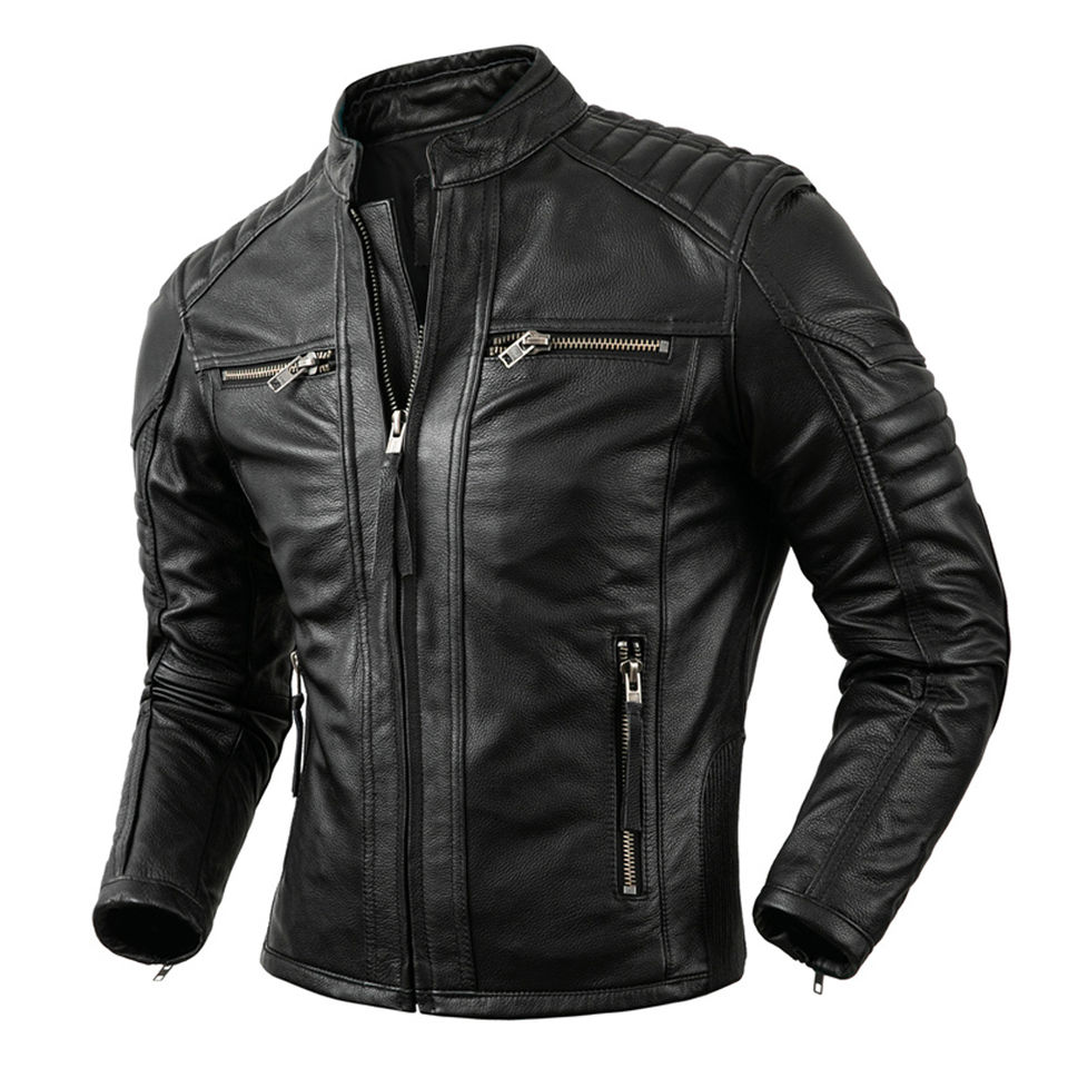 แจ็กเก็ตหนังแท้สำหรับผู้ชายเสื้อแจ็กเก็ตหนังแท้ระบายอากาศได้ดีตามสั่ง