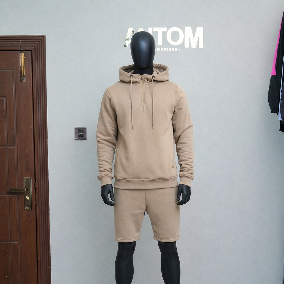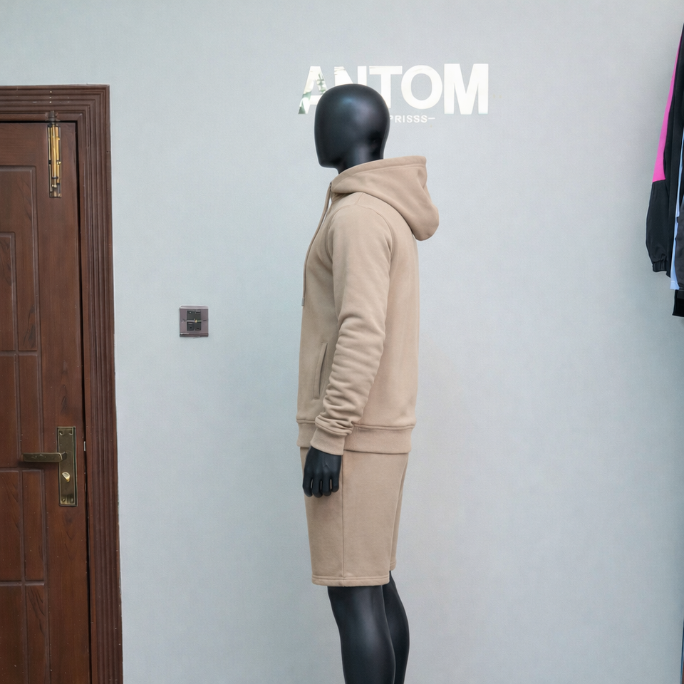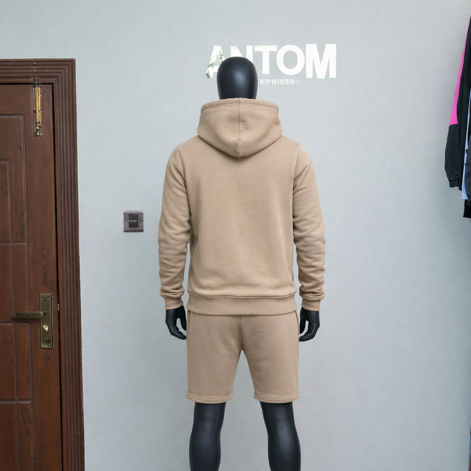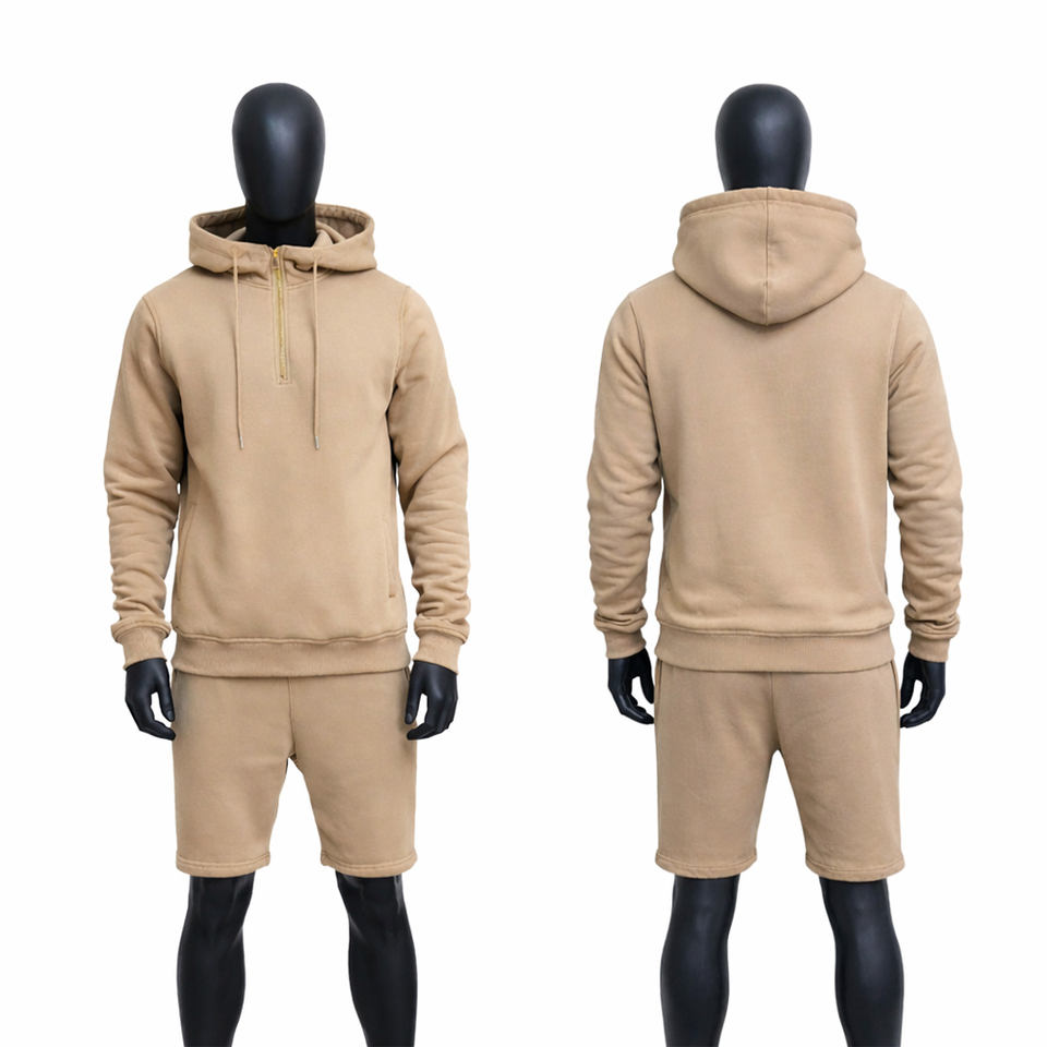ชุดฮู้ดดี้ผู้ชายคุณภาพดีที่สุด ชุดเซ็ตโลโก้สั่งทำ ผ้าฝ้าย 100% ชุดวอร์มขาสั้น ชุดเซ็ตสองชิ้น เสื้อฮู้ดดี้และกางเกงขาสั้น