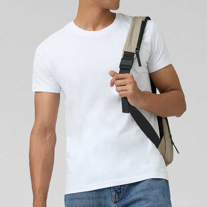 เสื้อยืดผู้ชายผ้าไมโครไฟเบอร์ระบายอากาศได้ดีสไตล์ใหม่เสื้อยืดผู้ชายสีพื้นแบบกำหนดเอง