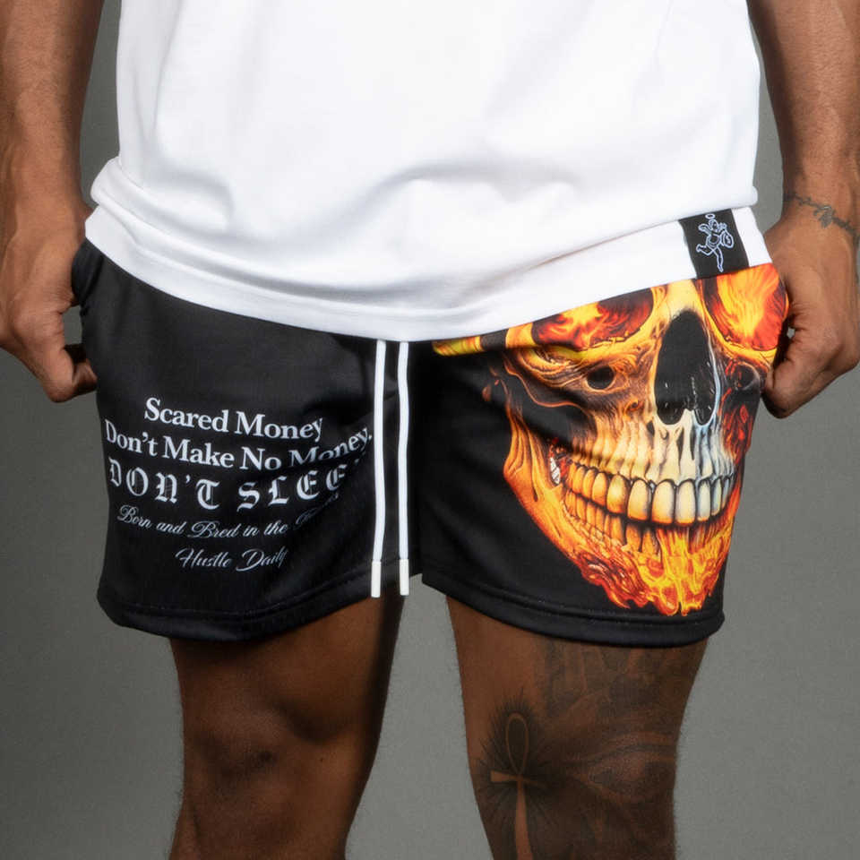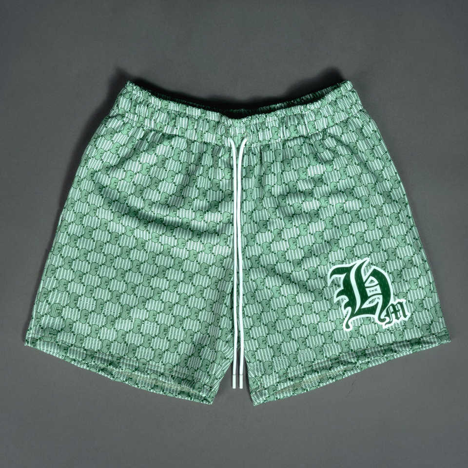 กางเกงขาสั้นตาข่ายสองชั้นสำหรับผู้ชาย7นิ้วพิมพ์ลายซับลิเมชันแบบลำลองพิมพ์ลายสำหรับฤดูร้อน