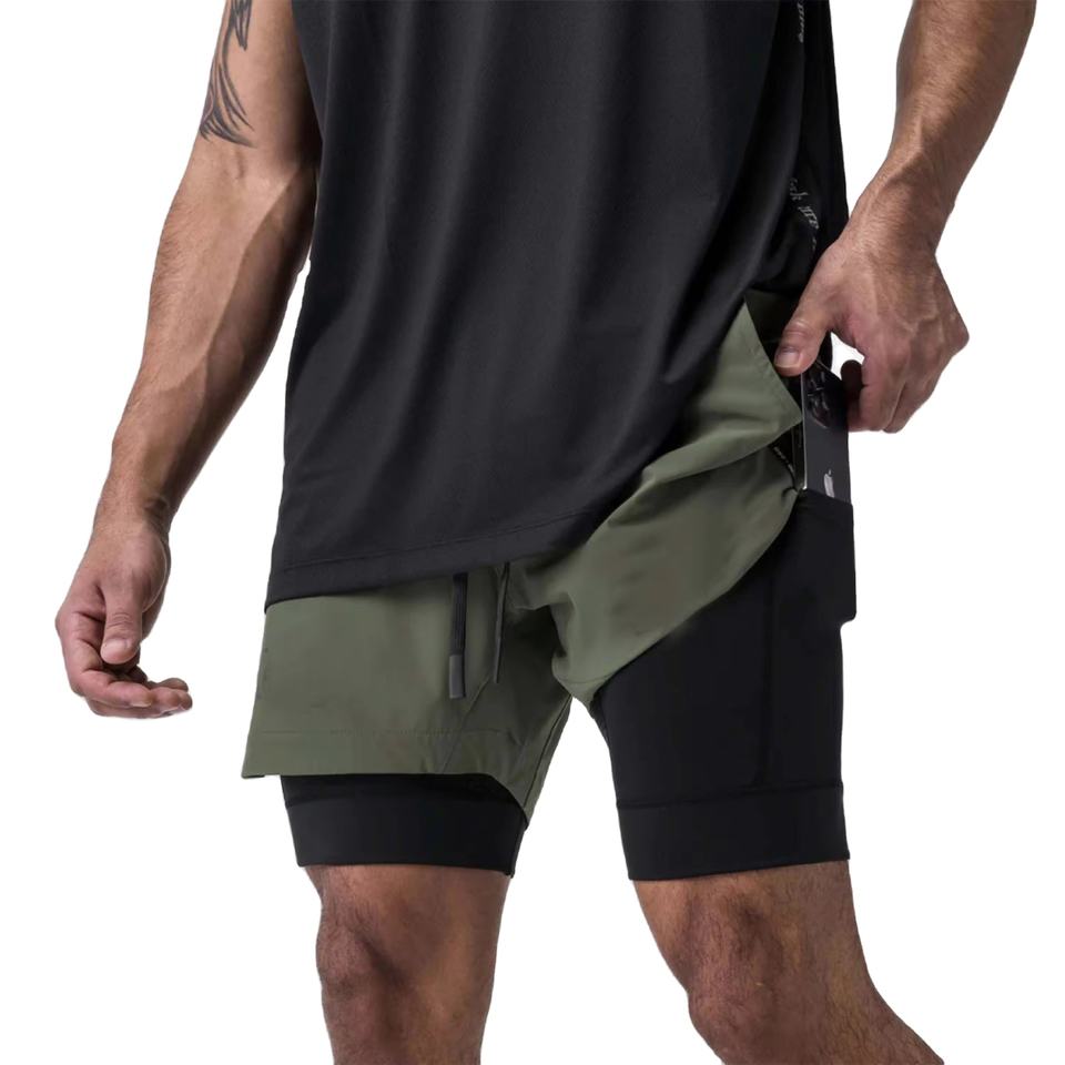 กางเกงขาสั้นออกกำลังกายแบบ2 in 1ของผู้ชายกางเกงขาสั้นออกกำลังกายรัดรูปสองชั้น5นิ้วดีไซน์ตามสั่ง