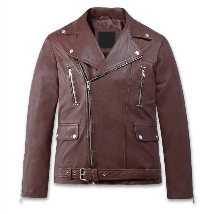 แจ็กเก็ตหนังสไตล์นักขี่จักรยานสำหรับผู้ชายแจ็คเก็ตหนังแท้สำหรับฤดูหนาวสไตล์ไฮสตรีท