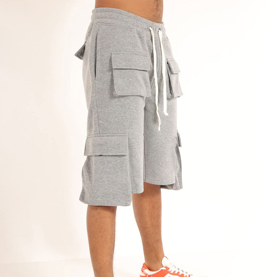 กางเกงขาสั้นผ้านอนวูฟเวนสำหรับผู้ชายกางเกงขาสั้นผ้าแคนวาสแบบลำลองสำหรับใส่100% กระเป๋าด้านข้างทรงหลวมทำจากผ้าใบแคนวาส