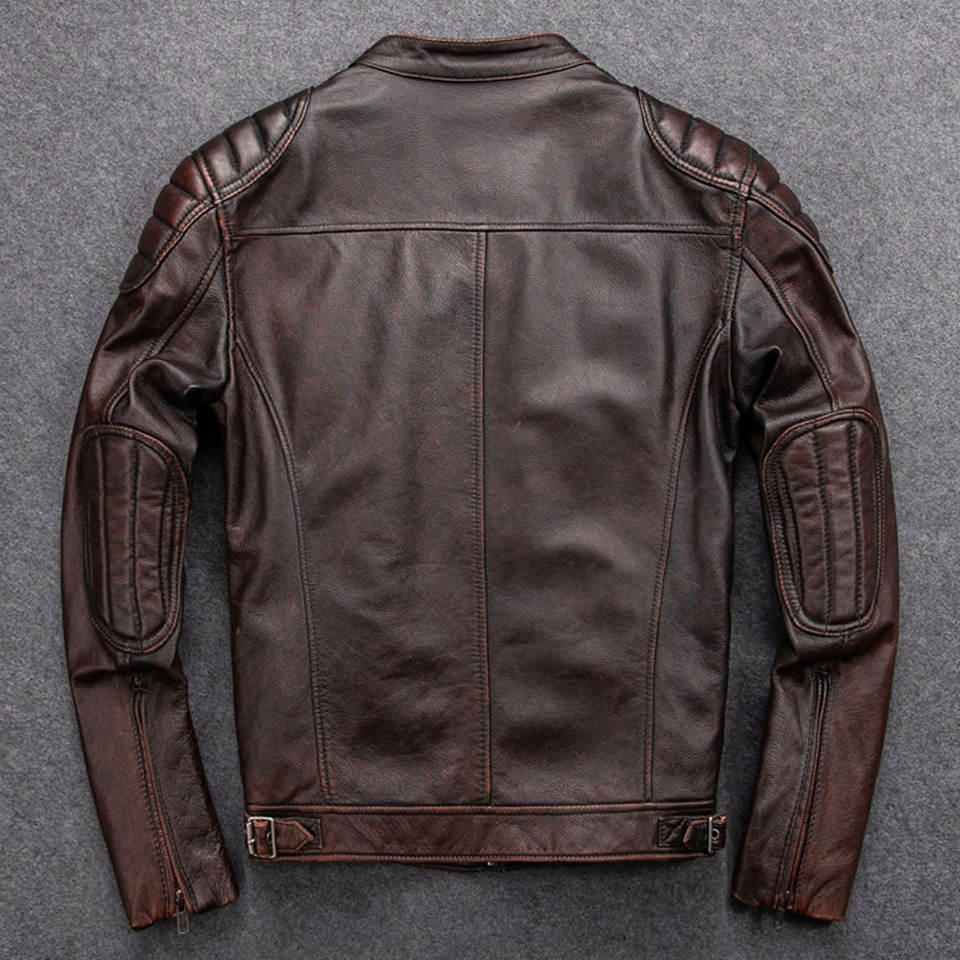 แจ็กเก็ตหนังแท้สำหรับผู้ชายสำหรับฤดูใบไม้ร่วงและฤดูหนาวสไตล์สตรีทสูงสีเรียบพร้อมบริการ OEM ออนไลน์