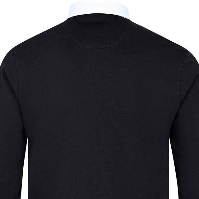 เสื้อรักบี้ชายลายทางแขนยาวคุณภาพดีที่สุด สั่งทำพิเศษด้วยเทคนิค Sublimation ผ้าโพลีเอสเตอร์ 100% ระบายอากาศได้ดี สีดำขาว