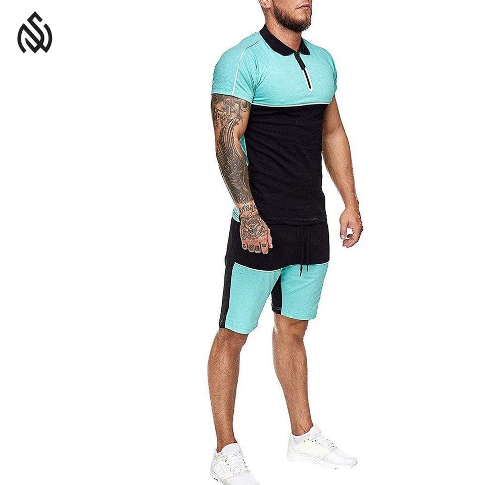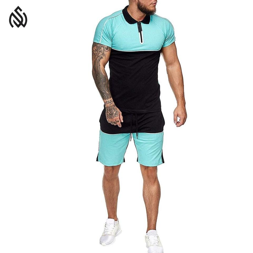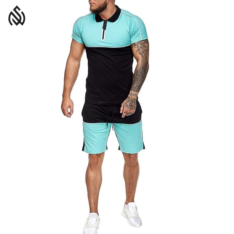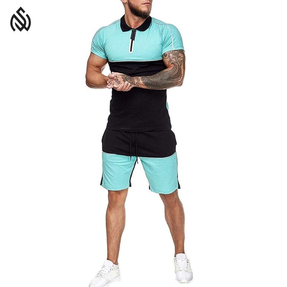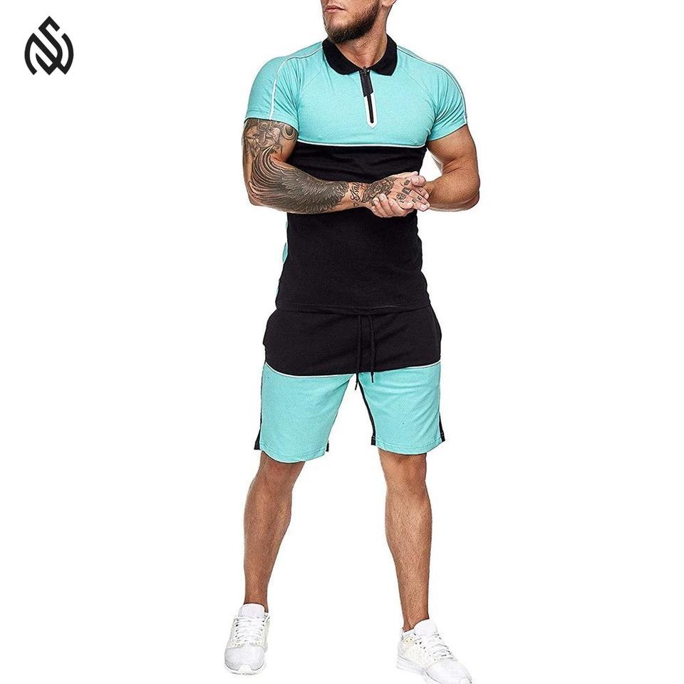 ชุดเสื้อผ้าลำลองสำหรับผู้ชายเสื้อโปโลแบบแห้งเร็วกางเกงขาสั้นแบบถักปักลายสำหรับฤดูร้อน