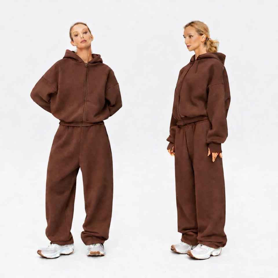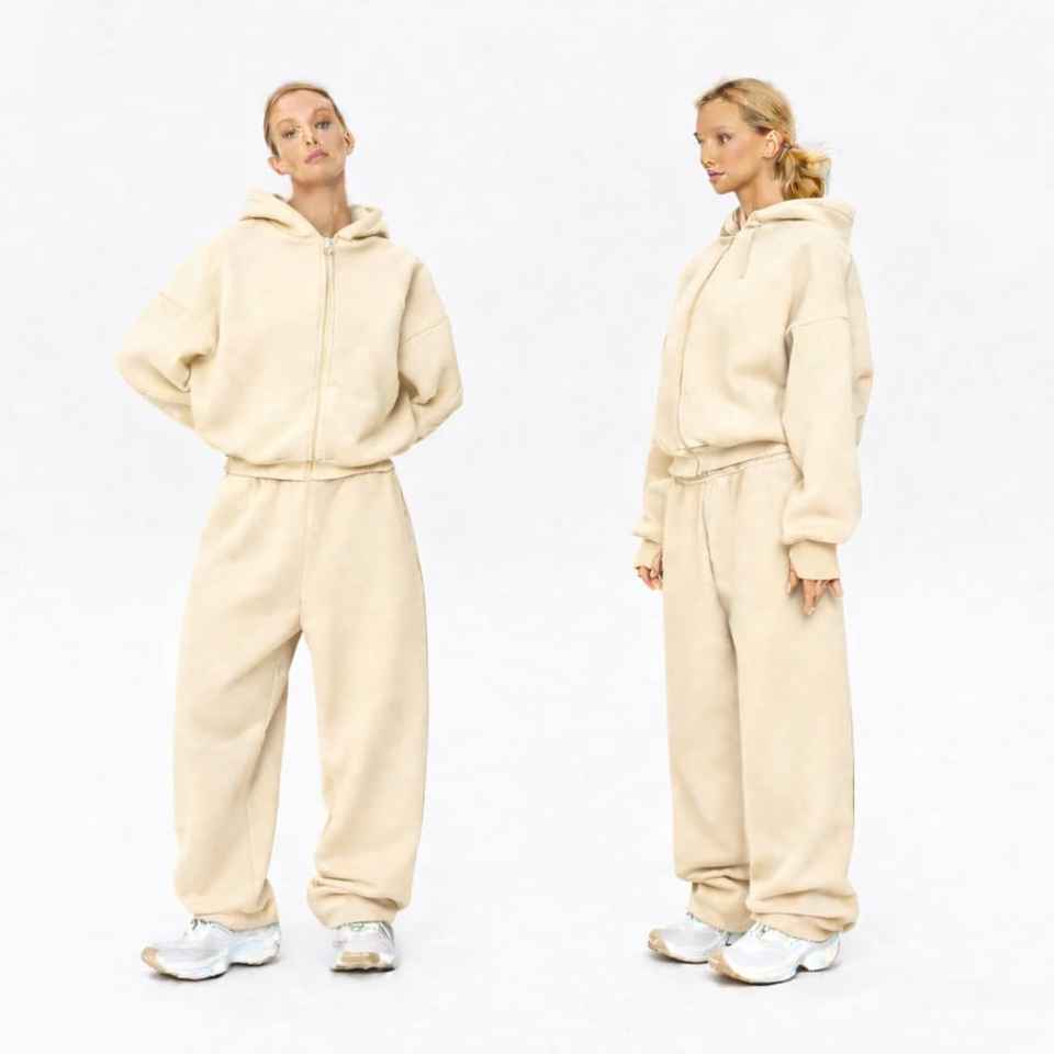 ชุดวอร์มผู้ชายคุณภาพดีที่สุด ผ้าฝ้ายฟลีซ 100% 350GSM ผ้าฟลีซเทคโนโลยี ทรงฮิปสเตอร์ แฟชั่นสุดเท่ ชุดวอร์มซิปแบบหลวมสำหรับผู้หญิง