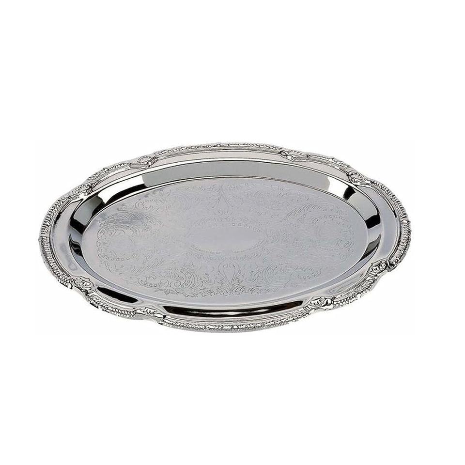ถาดเสริฟโลหะคุณภาพดีที่สุดพร้อมลายนูนลายดอกไม้ลายนูนรูปไข่พร้อมที่จับสองด้านสําหรับเสิร์ฟ
