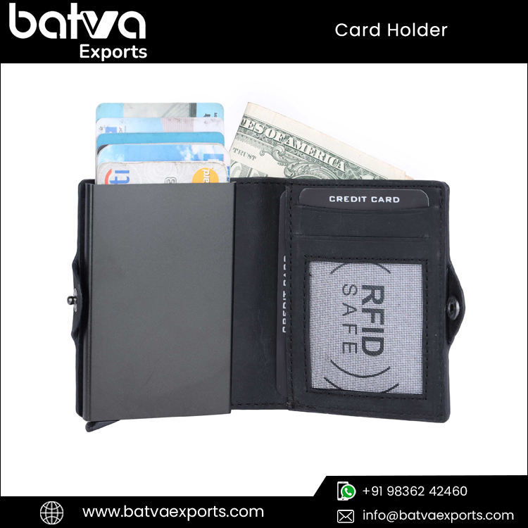 กระเป๋าใส่นามบัตรอลูมิเนียมหนังแท้ช่องใส่บัตรช่องใส่ธนบัตรดีไซน์ทันสมัย
