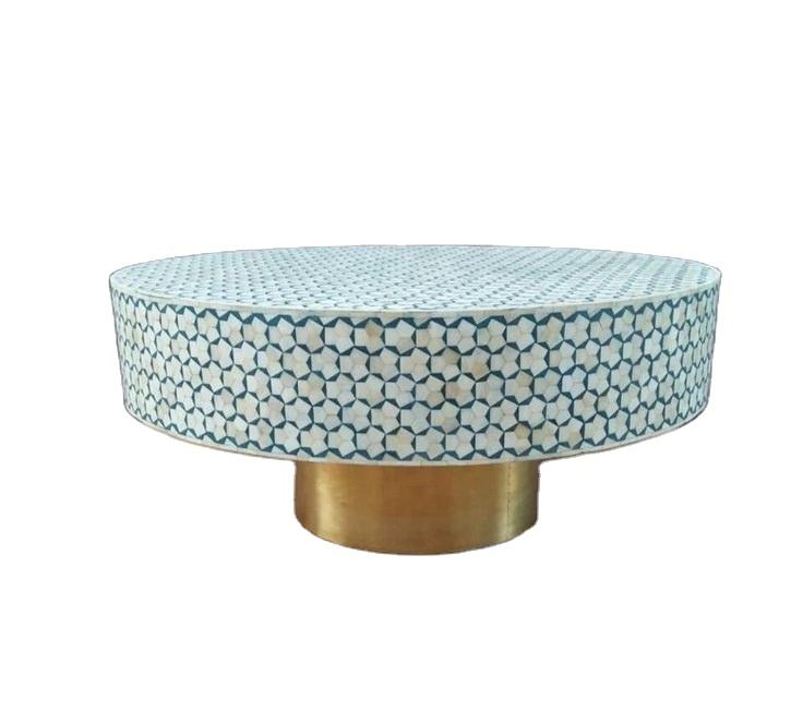โต๊ะกาแฟทำจากไม้แบบฝังกระดูกทรงกลมสำหรับบ้านหรือร้านอาหารแผงทำด้วยมือเฟอร์นิเจอร์ห้องนั่งเล่น