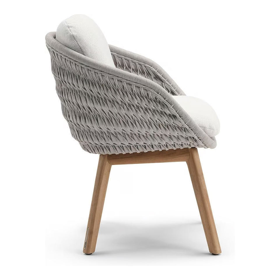 ชุดเฟอร์นิเจอร์กลางแจ้ง เก้าอี้รับประทานอาหารทรงกลมสำหรับลานบ้าน เก้าอี้สวนไม้สักธรรมชาติ พร้อมเชือกถักและเบาะกันน้ำ - ชิตตา