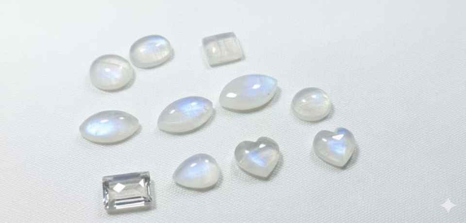 มูนสโตนคุณภาพดีที่สุด สีฟ้า รูปทรงตาแมว ฐานแบน แกะสลัก สีฟ้าโปร่งแสง รูปทรงตาแมว มูนสโตน ฐานแบน