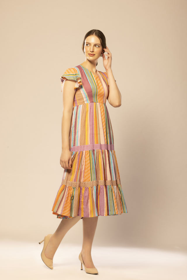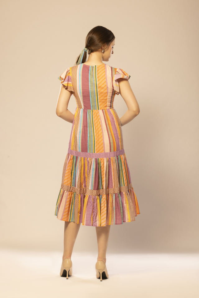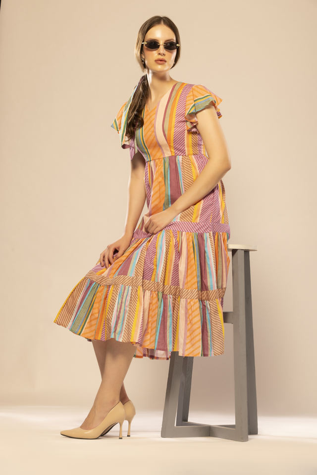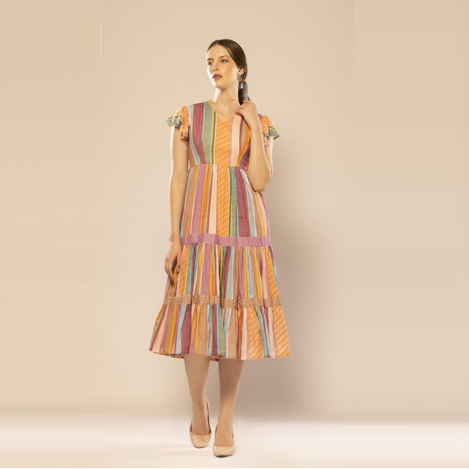 Best Quality Multicolor Striped Flared Dress Beach Wear Vacation Boho Outfit Available at Wholesale Price