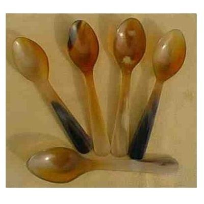 ช้อนเขาสัตว์สีน้ำตาลธรรมชาติ คุณภาพดีที่สุด ดีไซน์สไตล์สัตว์ ทำด้วยมือ พร้อมบล็อกอาเกตขัดเงา งานฝีมือธรรมชาติ