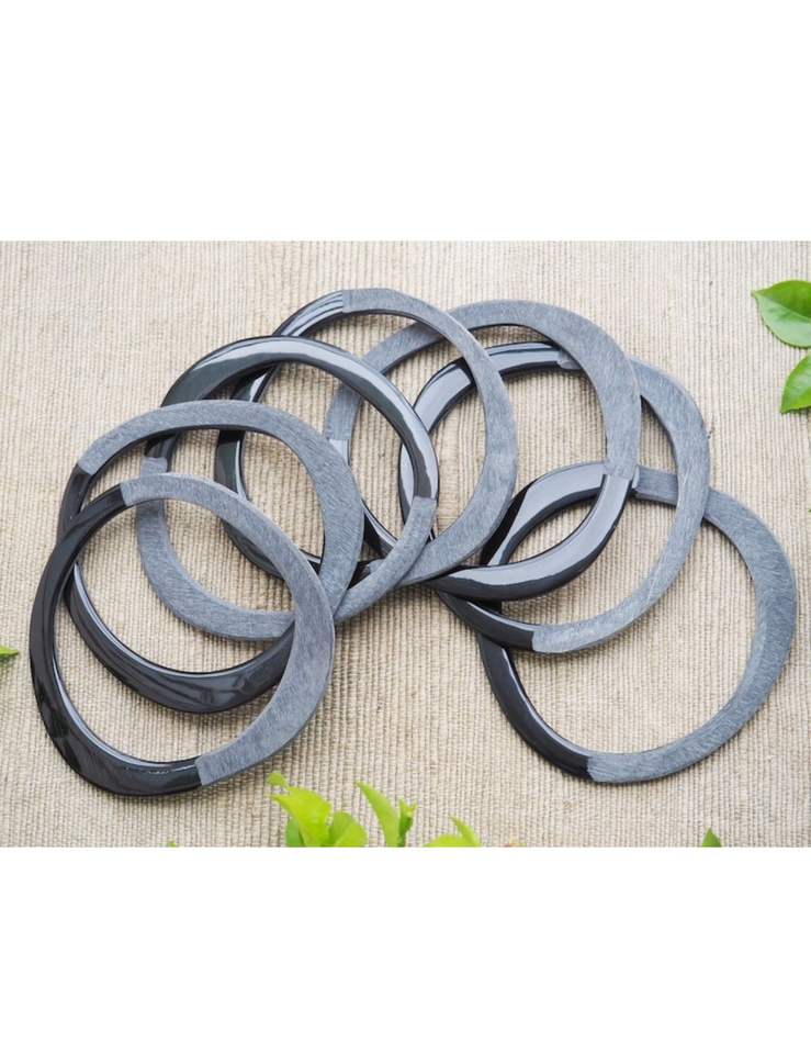 กำไลข้อมือทำมือจากเขาควายธรรมชาติคุณภาพดี กันน้ำ สไตล์รัก สีดำน้ำตาล แบบกว้าง - HF CRAFTS
