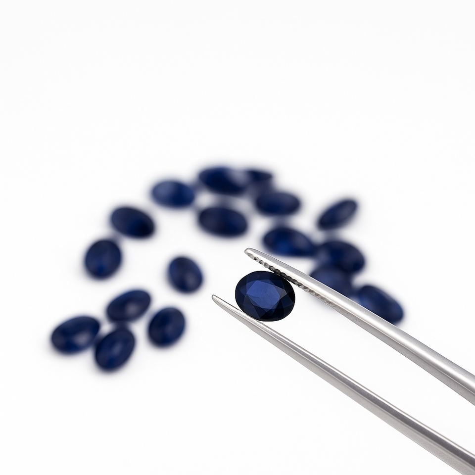พลอยแซฟไฟร์ธรรมชาติคุณภาพดีที่สุด รูปทรงวงรี 6x8 มม. สีน้ำเงินเข้ม สำหรับทำเครื่องประดับ ได้รับการรับรองจากผู้ตรวจสอบบุคคลที่สาม
