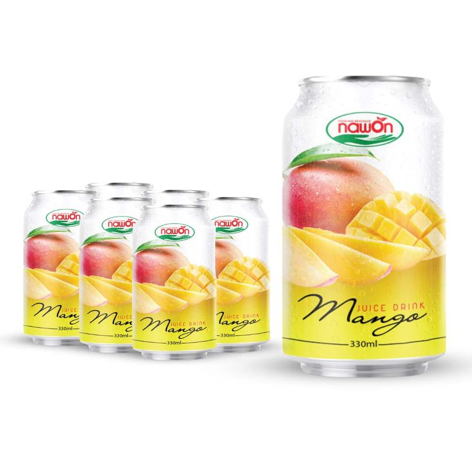 น้ำมะม่วงคุณภาพดีที่สุด บรรจุกระป๋อง 330 มล. น้ำผลไม้แท้ ผลิตโดย NAWON ในโรงงานเวียดนาม ได้รับมาตรฐาน GMP รับผลิตแบบ OEM ODM