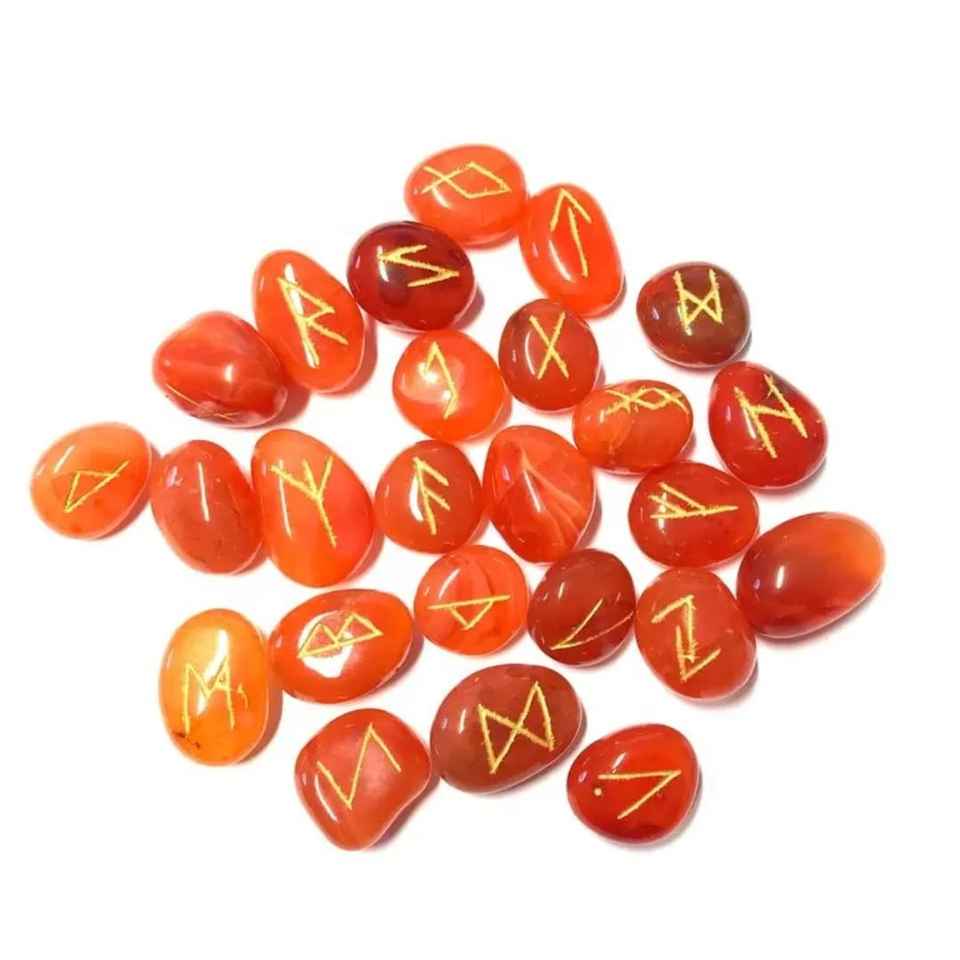 ชุดหินรูนคาร์เนเลียนสีแดงธรรมชาติแกะสลักหินอักษรรูนคริสตัลฮวงจุ้ยการรักษาด้วยพลอยสำหรับการทำนายการทำสมาธิ