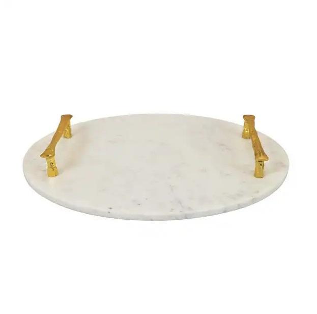 แผ่นหินชีสหินอ่อนธรรมชาติคุณภาพดีที่สุดถาดเสิร์ฟหินอ่อนสี่เหลี่ยมผืนผ้าตกแต่งพร้อมที่จับสีทองปรับขนาดได้