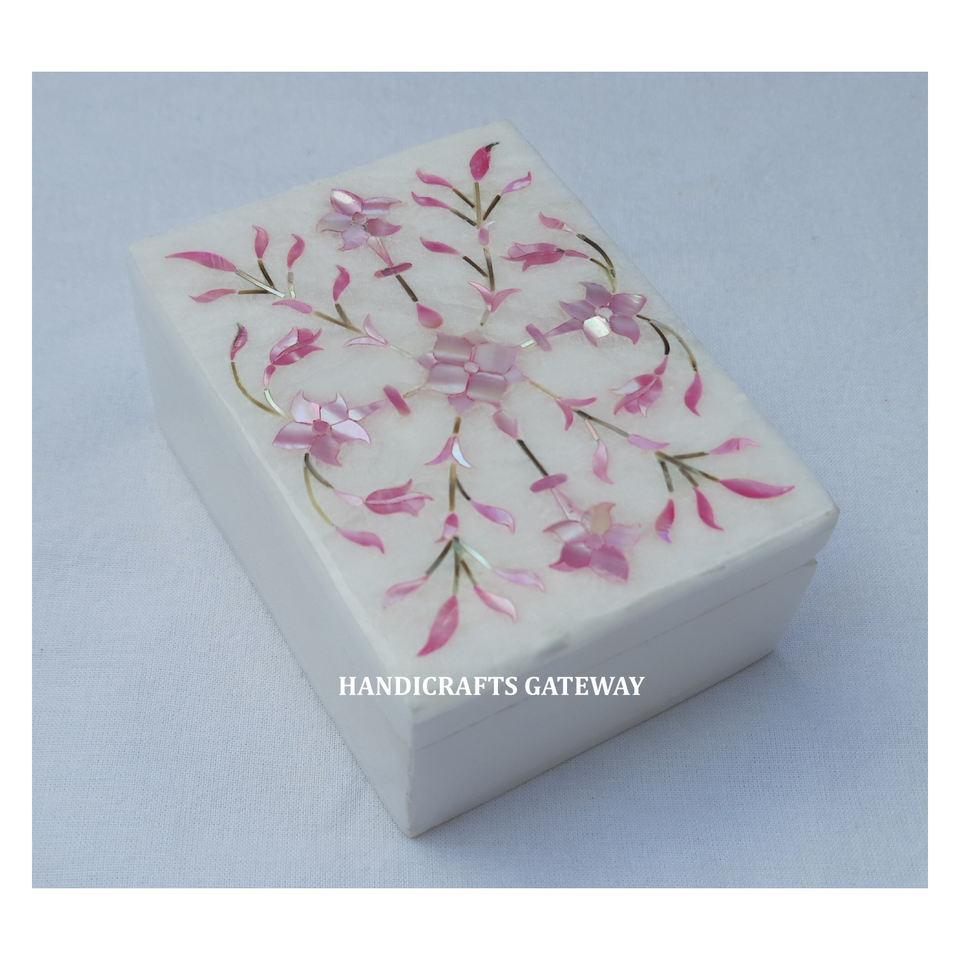 กล่องเครื่องประดับมุกฝังหินอ่อนสีขาวแฮนด์เมดใหม่ล่าสุดล่าสุดกล่องเครื่องประดับมุกฝังหินอ่อนสีชมพูสำหรับของขวัญแต่งงานและของตกแต่งงานปาร์ตี้