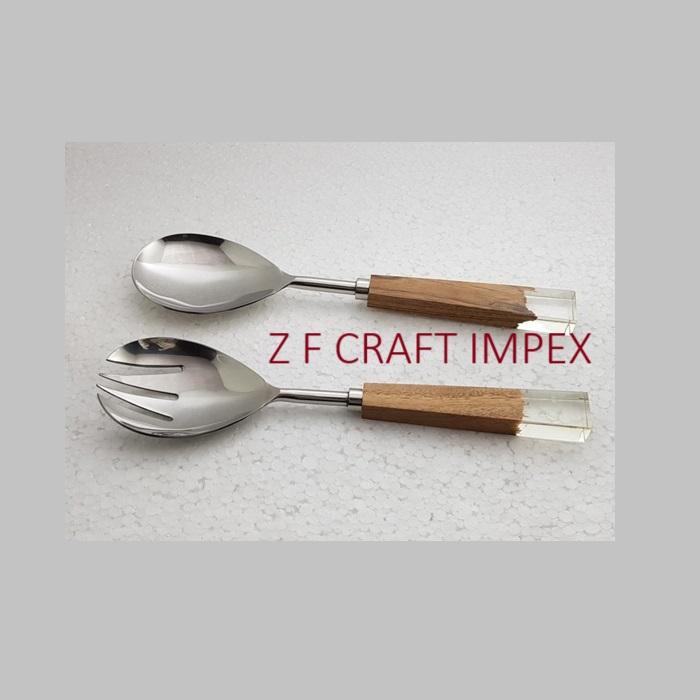 ช้อนเสิร์ฟสลัดสแตนเลสด้ามไม้ธรรมชาติทำจากเรซินเครื่องมือสำหรับเซิฟเวอร์สลัดดีไซน์ใหม่