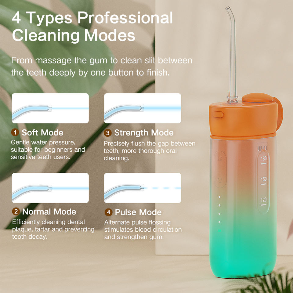 เครื่องขัดฟันด้วยน้ำสำหรับใช้ในบ้านสีส้มพร้อมสายชาร์จ USB ที่ทนทานสามารถปรับได้3โหมดสามารถจัดฟันได้จุได้เยอะสำหรับ ukca โรงแรม