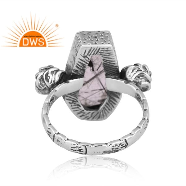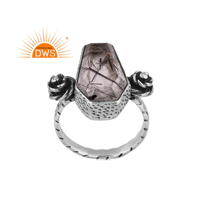 แหวนอัญมณีสีดำธรรมชาติสีเงินแท้ออกซิไดซ์