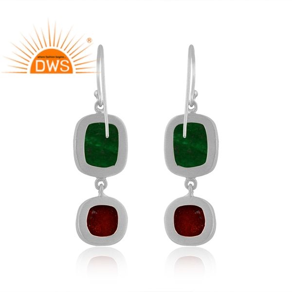 ต่างหูพลอยแจสเปอร์สีแดงธรรมชาติสีเงินออกซิไดซ์เหมาะสำหรับเป็นของขวัญสำหรับผู้หญิง