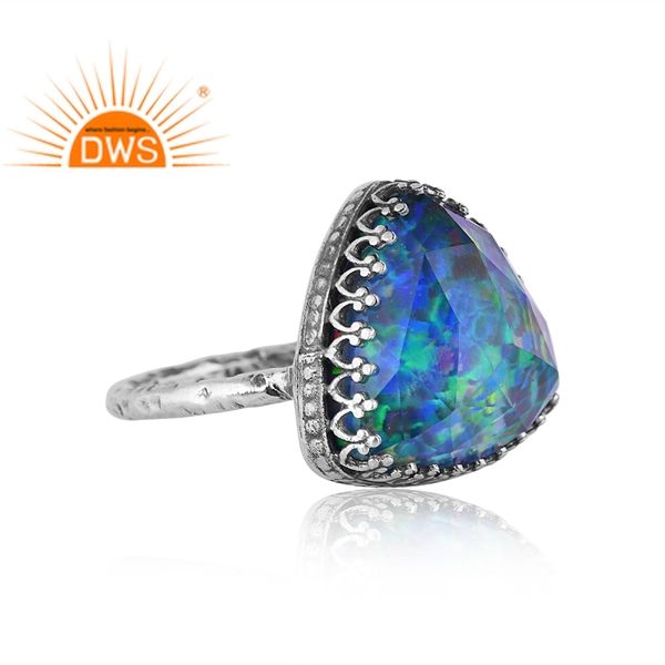 แหวนพลอยโอปอลไฟสังเคราะห์สีเขียวเงินออกซิไดซ์สีเขียวผลิตตามสั่ง