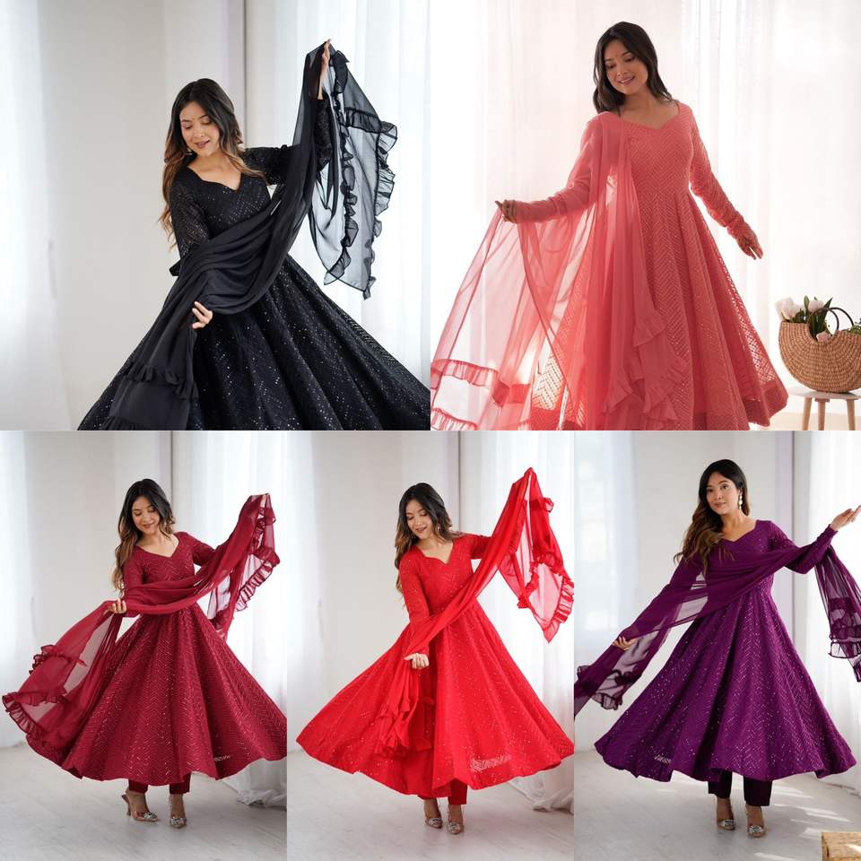 ผ้าอนารกาลีสีชมพูคุณภาพดีเยี่ยม เนื้อผ้าฟ็อกซ์จอร์เจตต์ลุคฮ์นาวีเนื้อนุ่ม หนักแน่น ประดับด้วยงานปักดิ้นลายสวยงาม ราคาขายส่ง