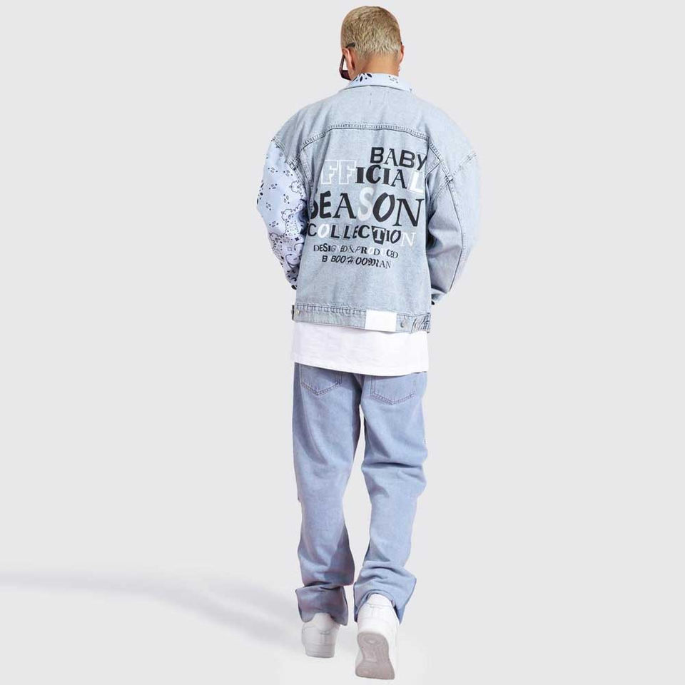 แจ็คเก็ตยีนส์ผ้าฝ้ายคุณภาพดีไซส์ใหญ่ ทรงบ็อกซี่ สไตล์วินเทจสุดเทรนดี้ ผลิตจากโรงงานโดยตรงสำหรับผู้ชาย
