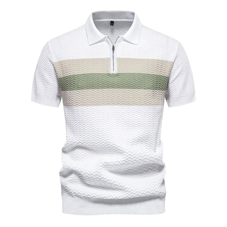 เสื้อโปโลผู้ชายไซส์ใหญ่พิเศษเสื้อโปโลแขนสั้นมีซิปรูดแบบมีซิปพิมพ์ลายทางแบบกำหนดเอง