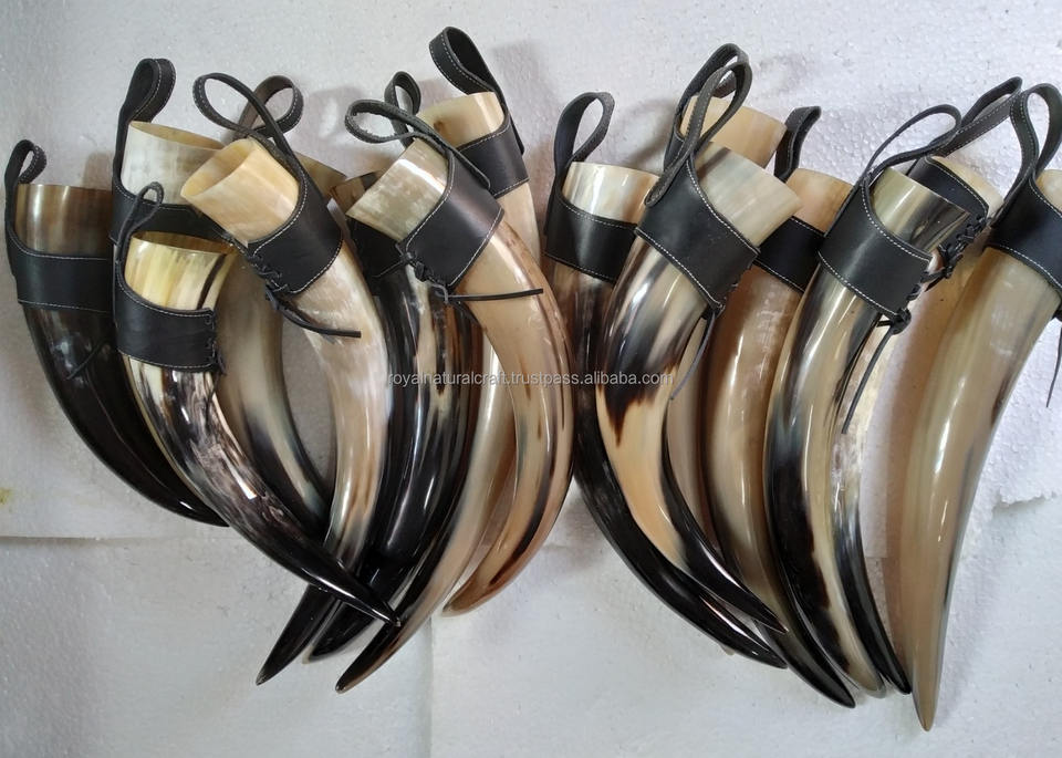Best Quality Polished Ox Horn Stylish Animal Design Viking Powder Horn Cost-Effective Natural Crafts Wedding NATURAL CRAFT
