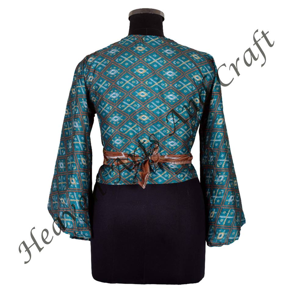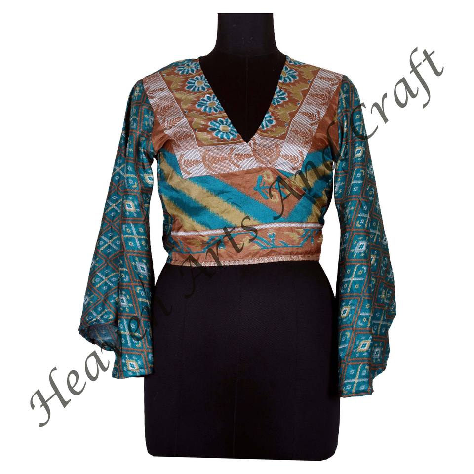 หมายเลขรุ่น:Recycle Sari Silk Tie Tops Bell Sleeves