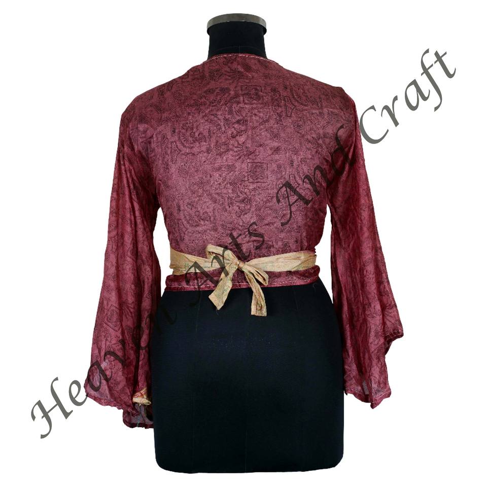 Recycle Sari Silk Tie Tops Bell Sleeves